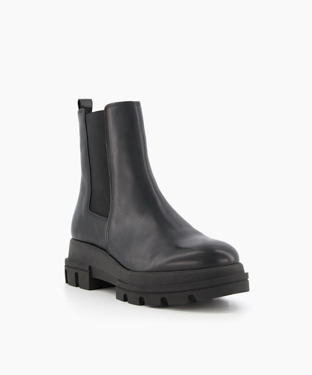 Provenses Black Leather Chunky Sole Chelsea Boots Dune London