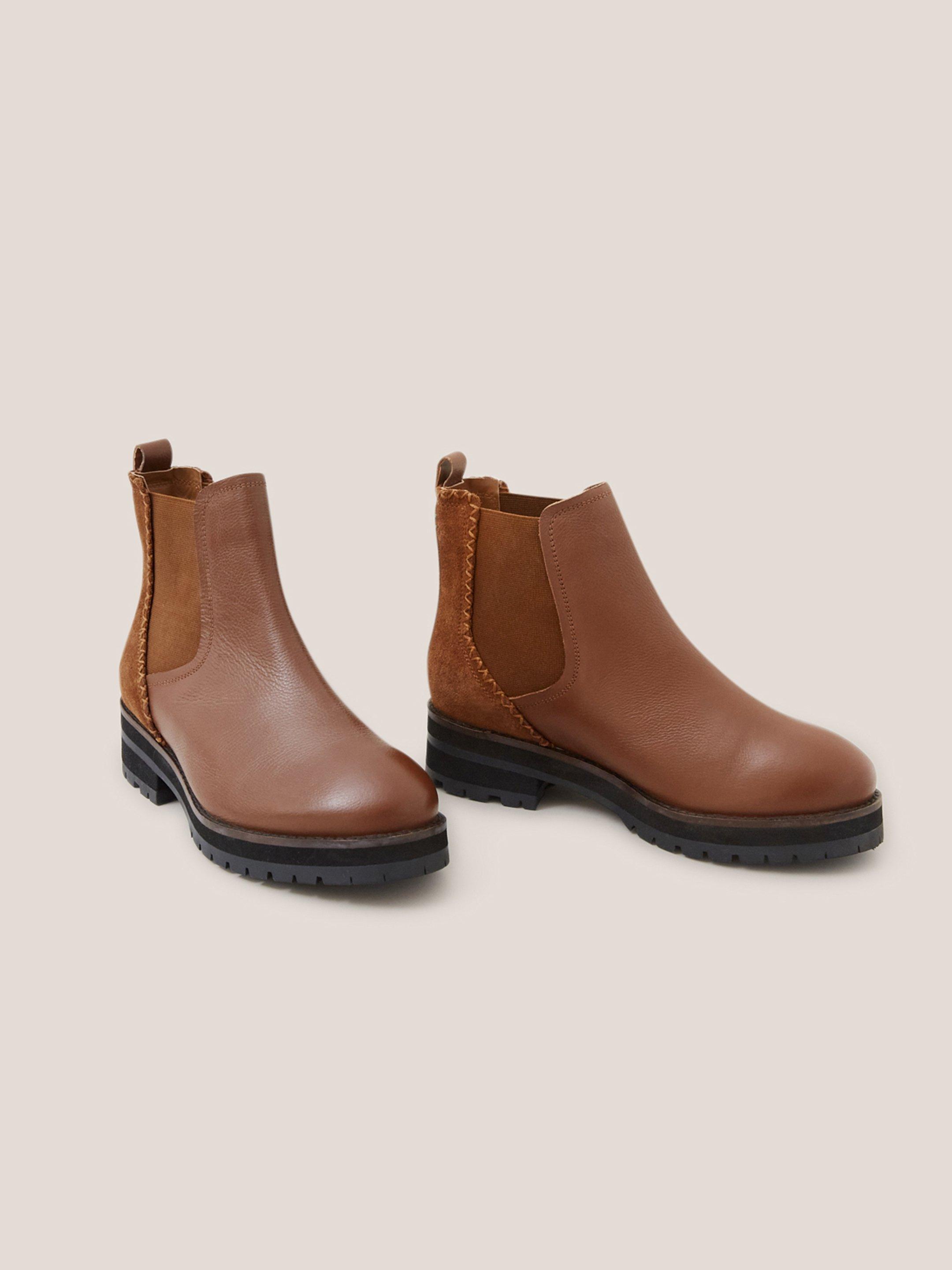 Wide fit flat clearance chelsea boots, Wide Fit Leather Chelsea Boot in MID TAN White Stuff clearance