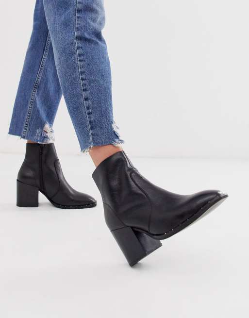 ASOS DESIGN Atlanta studded western leather ankle boots in black