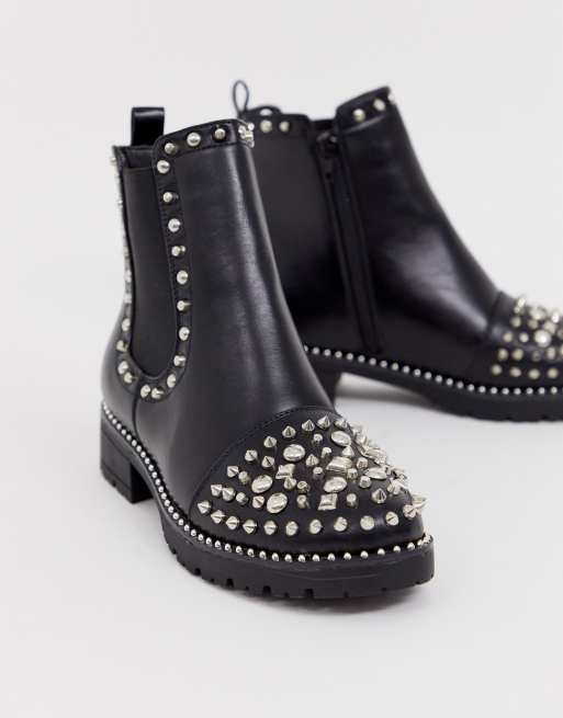 Glamorous Black Studded Buckle Flat Ankle Boots ASOS