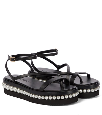 Jimmy Choo Pine 55 Embellished Leather Platform Sandals In Black