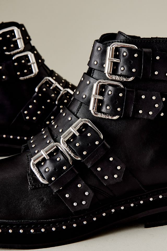 ASRA Camelia Leather Stud Buckle Ankle Biker Boots Anthropologie UK