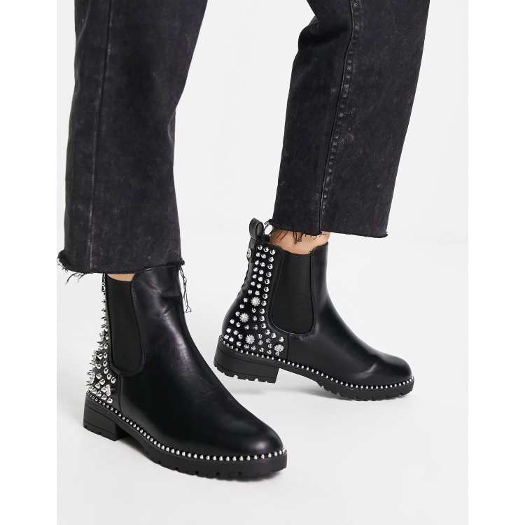 Truffle Collection studded cheslsea boots in black and silver ASOS