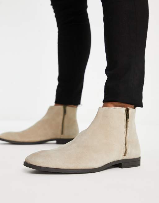 ASOS DESIGN chelsea boots in stone suede with natural sole