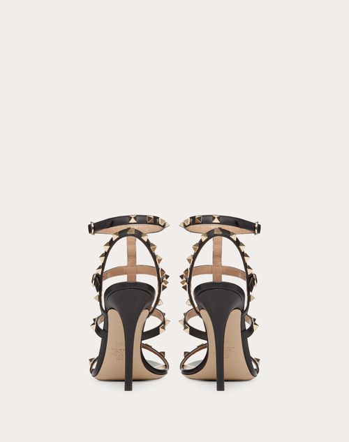 Rockstud Calfskin Ankle Strap Sandal 100 Mm for Woman in Black