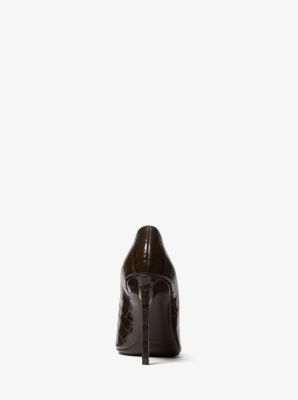 Michael kors claire clearance embossed leather pump, Michael Kors Claire Pump Metallic Snakeskin Embossed Leather Silver Orig 135 clearance
