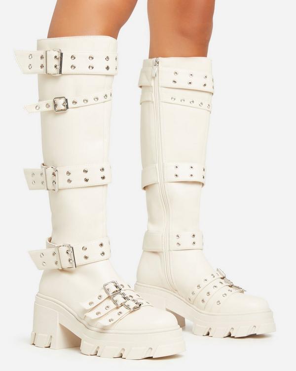 Blade Chunky Sole Multi Buckle Strap Detail Knee High Long Biker
