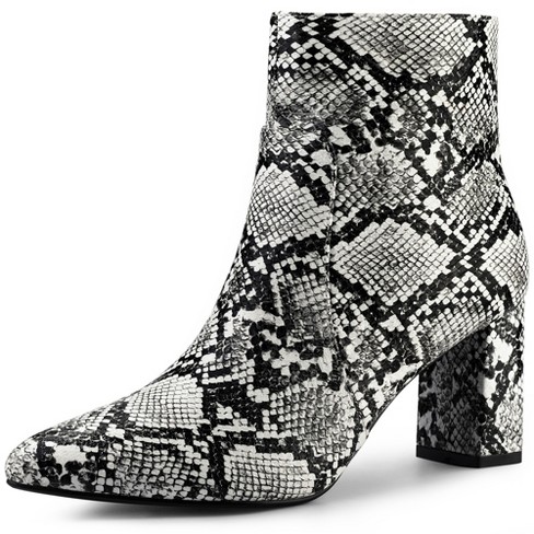 Allegra K Women s Pointed Toe Snake Print Chunky Heel Ankle Boots