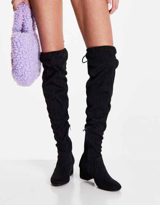 Qupid Suede Chunky Metallic Heeled Over The Knee Boots Lailah s Loft