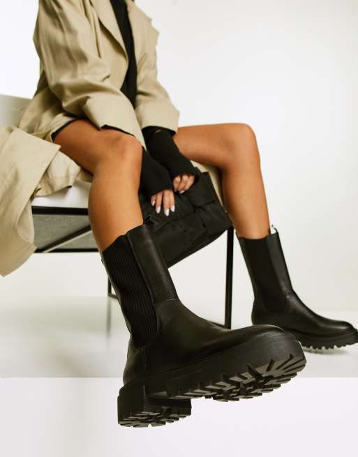 Steve Madden Arkin mid calf chelsea boots in black leather