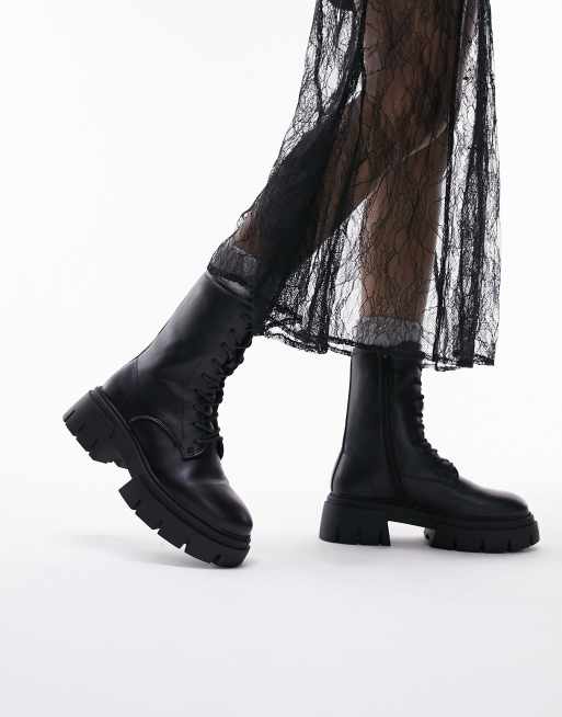 Asos design attitude wide clearance fit chunky lace up boots, Topshop Wide Fit Lydia chunky lace up boots in black clearance