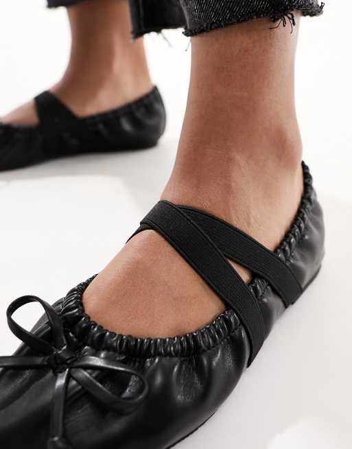 ASOS DESIGN Los Angeles ruched ballet flats with elastic strap in