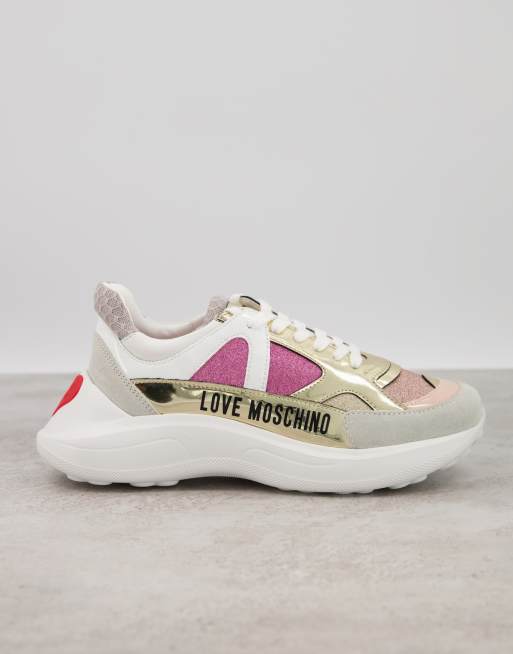 Love Moschino all over glitter trainers in pink and silver mix ASOS