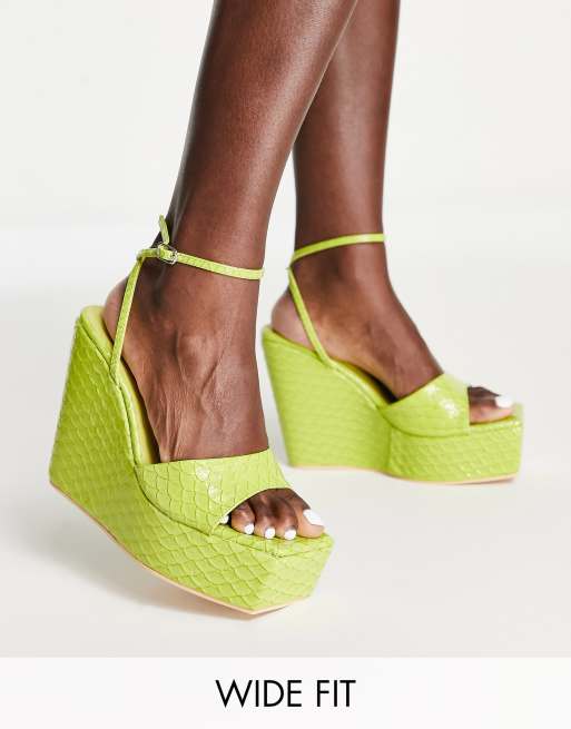 Public Desire Wide Fit Kempton wedge heeled sandals in lime snake