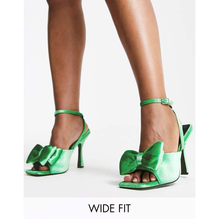 ASOS DESIGN Wide Fit Walker bow heeled sandals in green ASOS