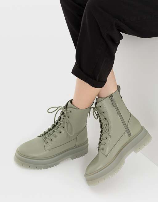 Green flat ankle clearance boots, Women s barefoot walking boots Magical Shoes Lupino Green clearance
