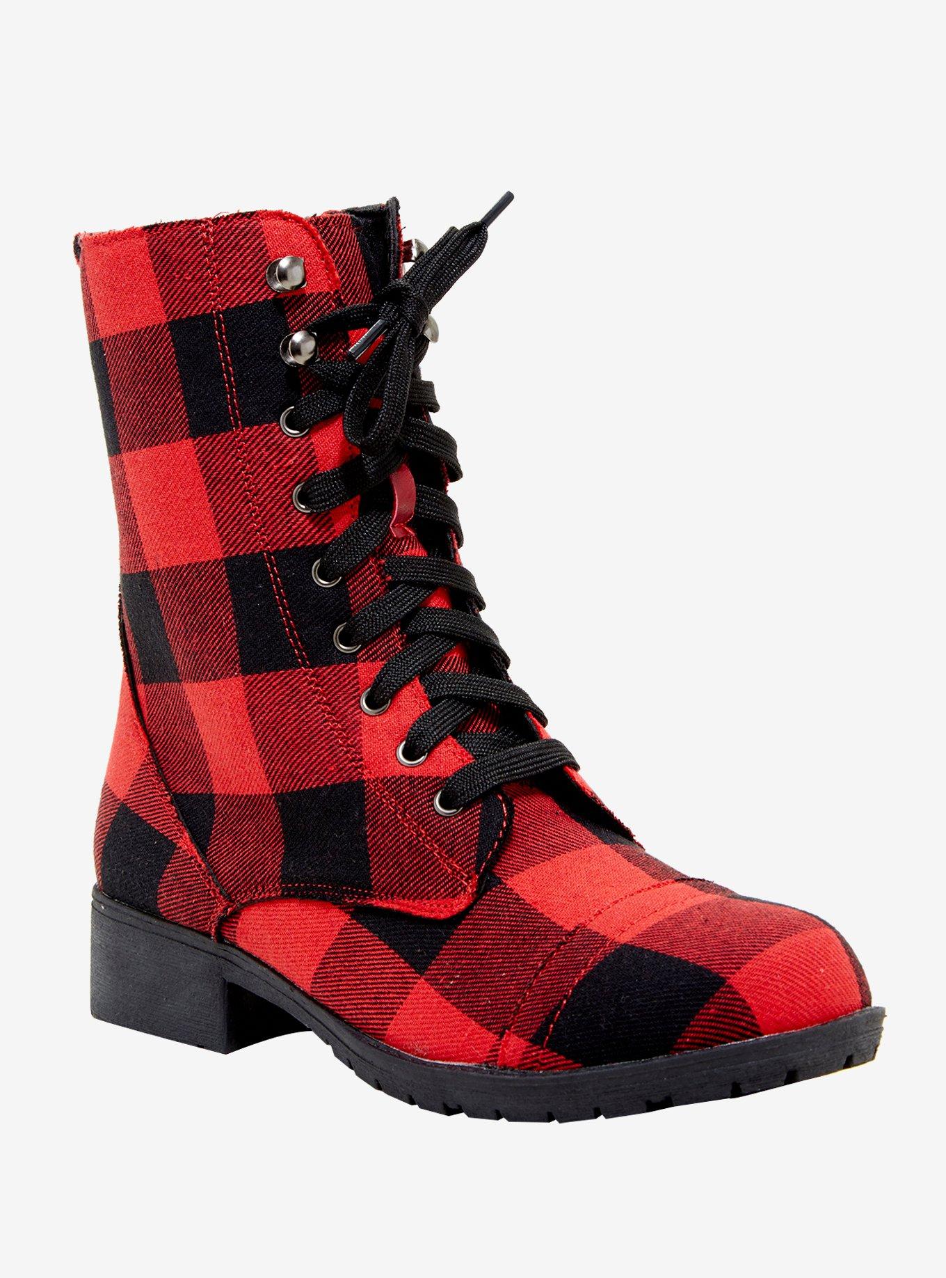 Red buffalo plaid clearance boots, Dirty Laundry Red Black Buffalo Plaid Combat Rain Boots Womens 10 clearance