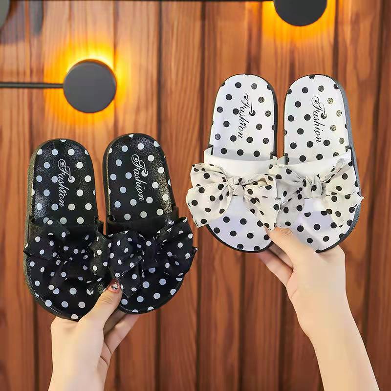Black and white clearance polka dot slippers, 2208 Children s slippers Girl princess Polka Dot bow indoor and clearance