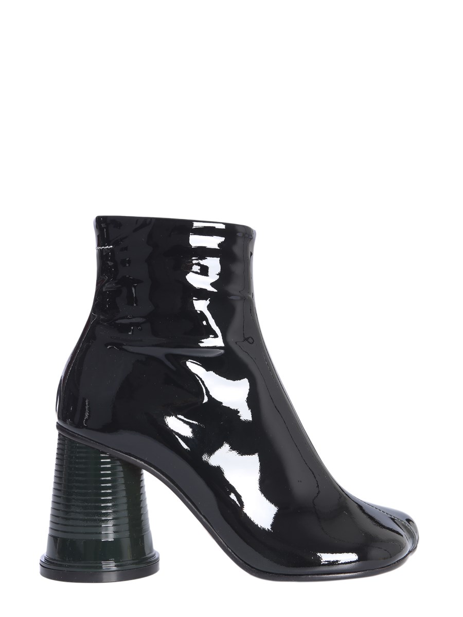 Mm6 clearance cup heel, MM6 MAISON MARGIELA PATENT LEATHER ANKLE BOOTS WITH TUMBLER clearance