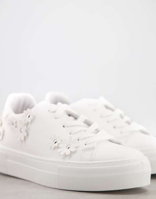 ASOS DESIGN Dacia chunky flatform sneakers with flowers in white