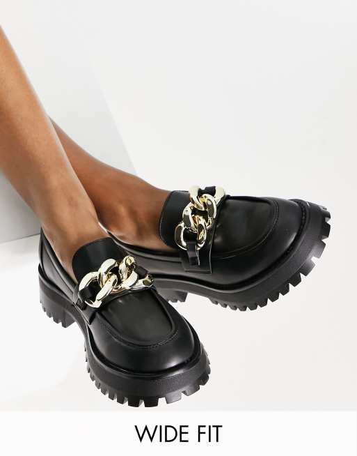 Stradivarius Wide Fit chunky flat loafers with chain detail in