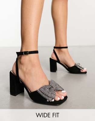 Public Desire Wide Fit Nancy Embellished Bow Mid Heels In Black