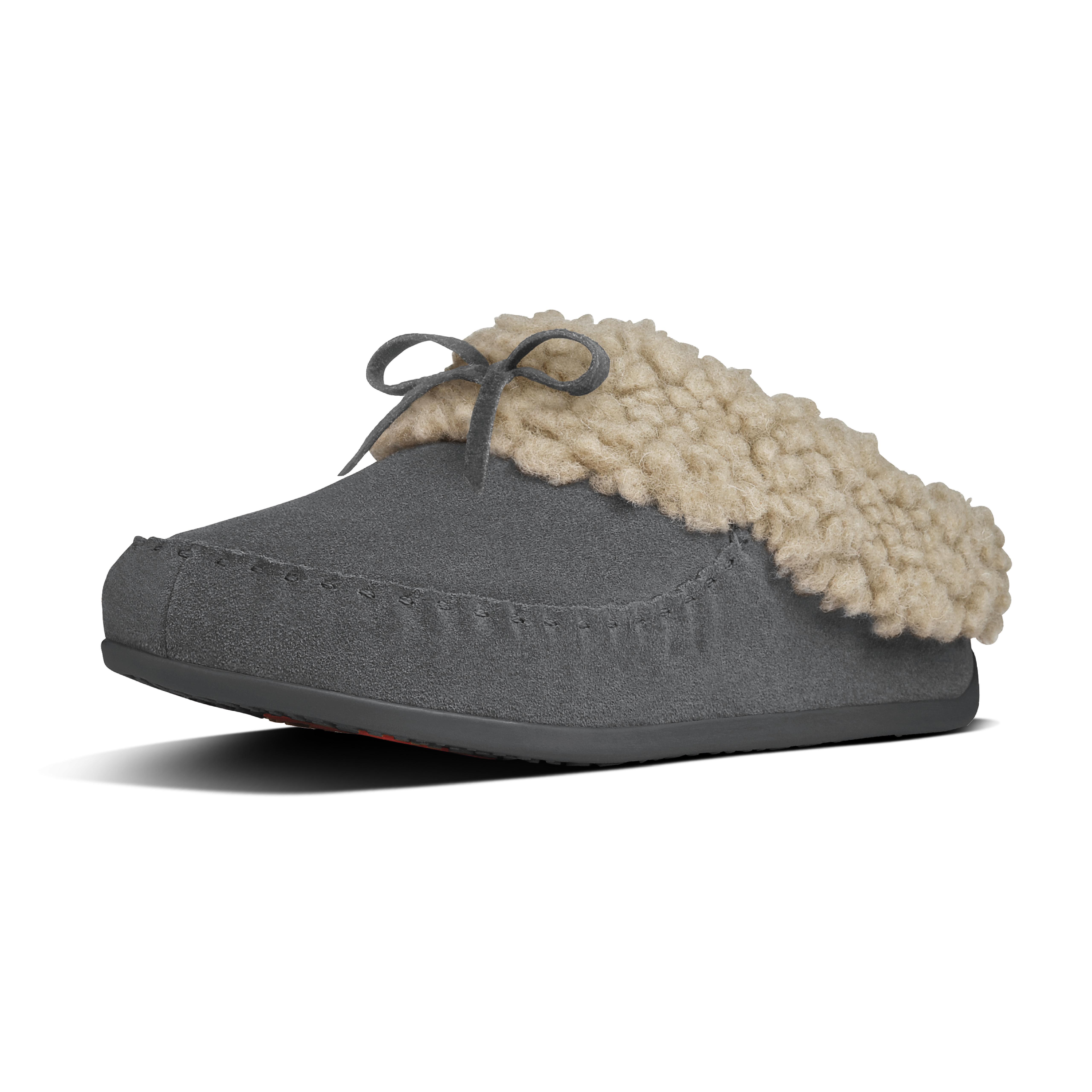 Fitflop clearance cuddler slippers, FitFlop Cuddler Snugmoc Suede Slippers Charcoal Leather Women s US clearance