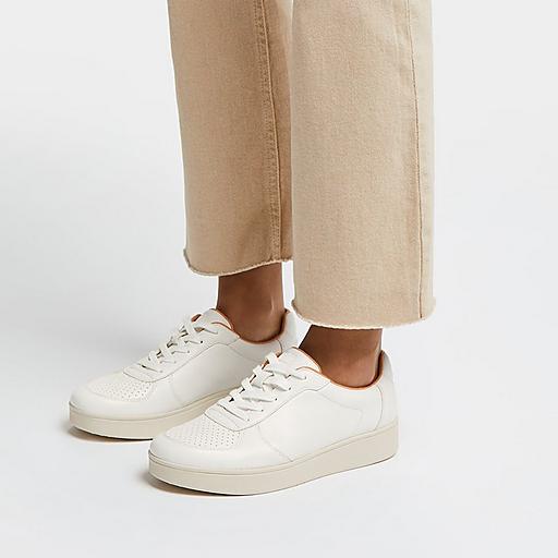 FitFlop Rally Lace Up Leather Trainers Urban White at John Lewis