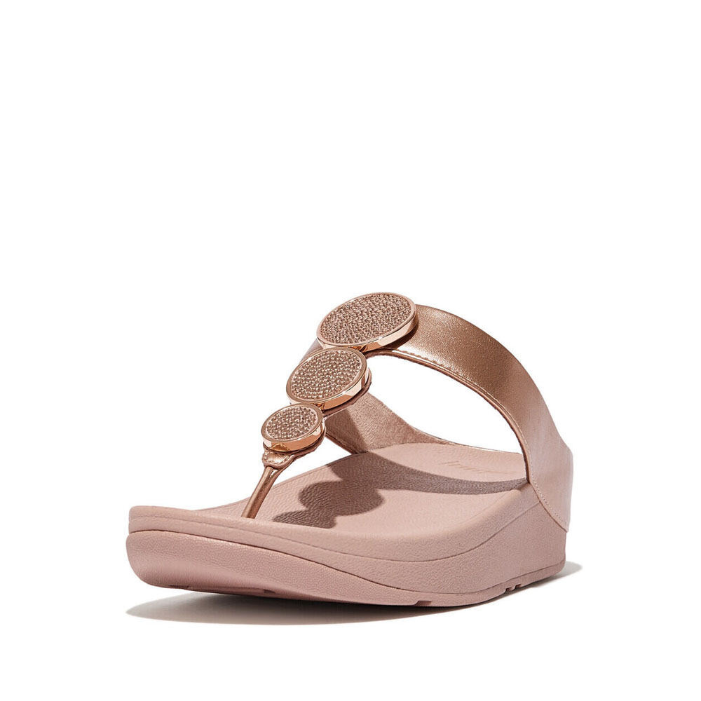 FitFlop HALO Bead Circle Metallic Toe Post Sandals Rose Gold