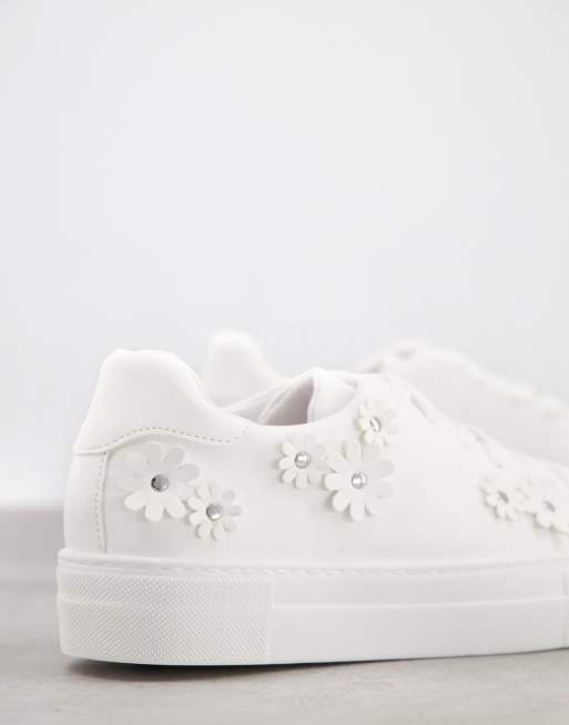 ASOS DESIGN Dacia chunky flatform trainers with flowers in white