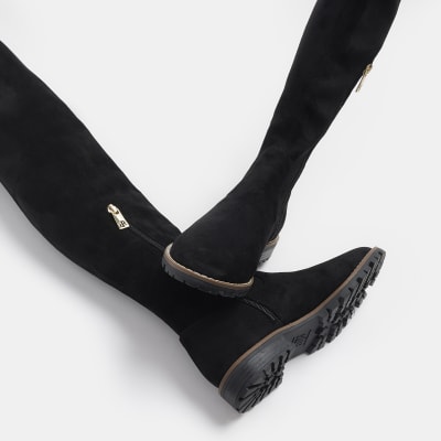 Over the knee clearance boots river island, Black suedette over the knee boots River Island clearance