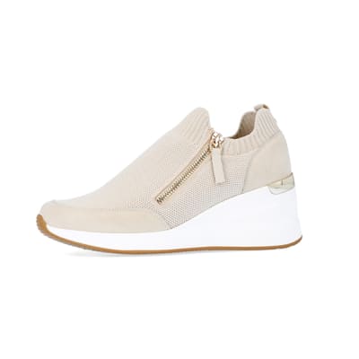 Beige slip on wedge trainers River Island
