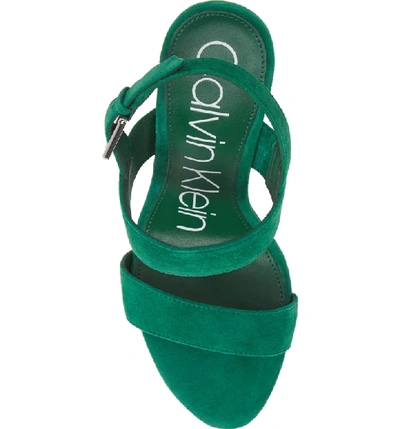 Calvin Klein Leslie Wedge Sandal In Emerald Green Leather ModeSens