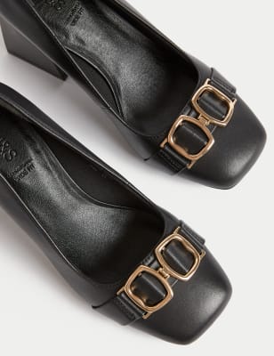 Marks and spencer ladies shoes clearance wide fit, Wide Fit Leather Block Heel Court Shoes M S Collection M S clearance