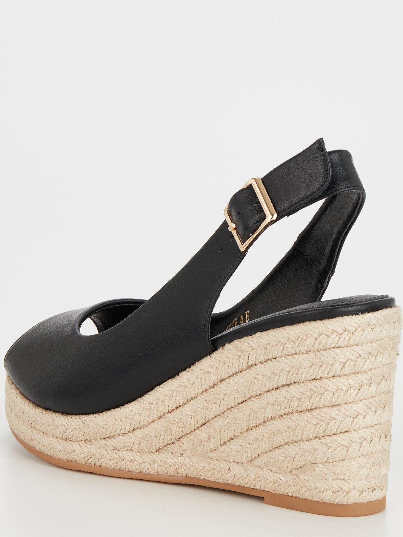 V by Very Peep Toe Slingback Wedge Sandal Black littlewoods