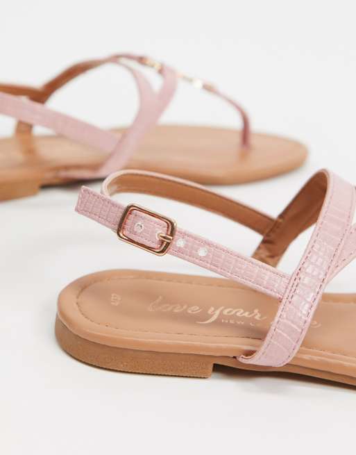 Pale Pink Leather Look Plaited Toe Post Sandals New Look