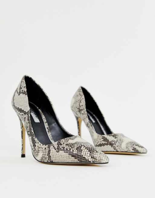 Miss Selfridge pointed court heels in grey snake