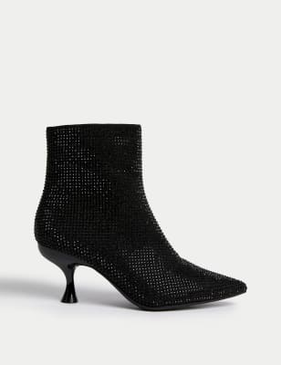 Wide Fit Sparkle Kitten Heel Ankle Boots M S KR