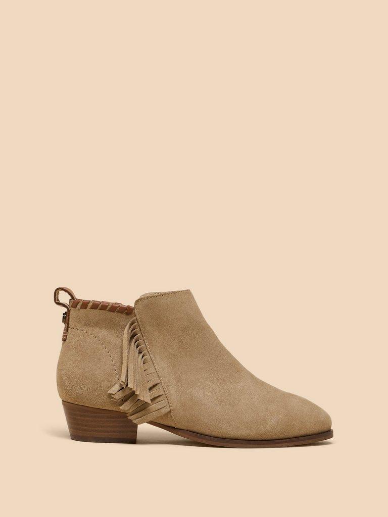 Acacia Suede Fringe Ankle Boot in LIGHT NATURAL White Stuff