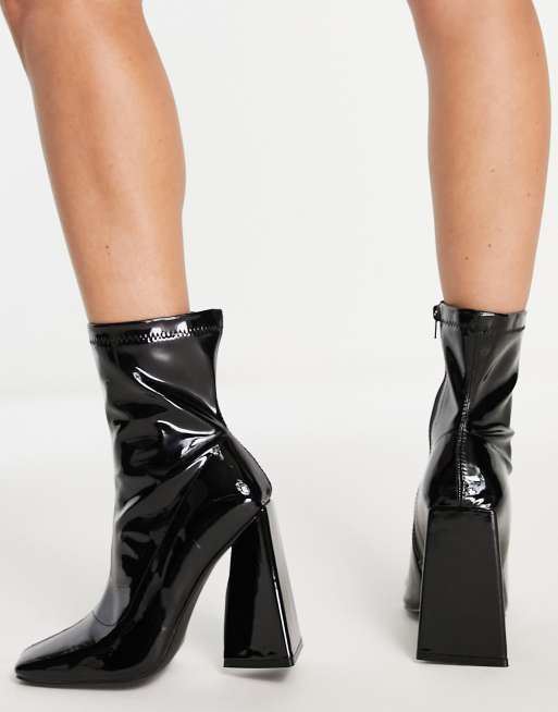 Public Desire Wide Fit Craving flare heel ankle boots in black patent