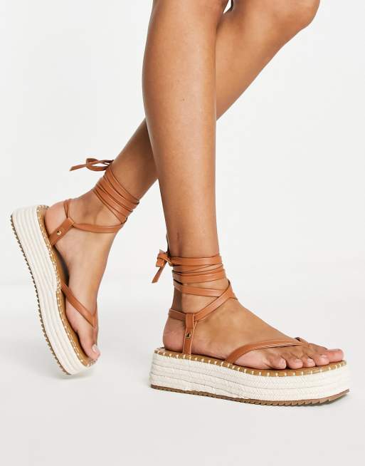 Tan clearance platform espadrilles, Glamorous Wide Fit espadrille wedge sandals in tan micro clearance