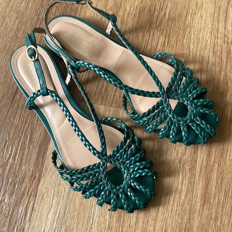 Sand lia Arezzo Rasteira Verde Tiras Huarache 36 Rasteira Feminina Arezzo Usado 92820071 enjoei