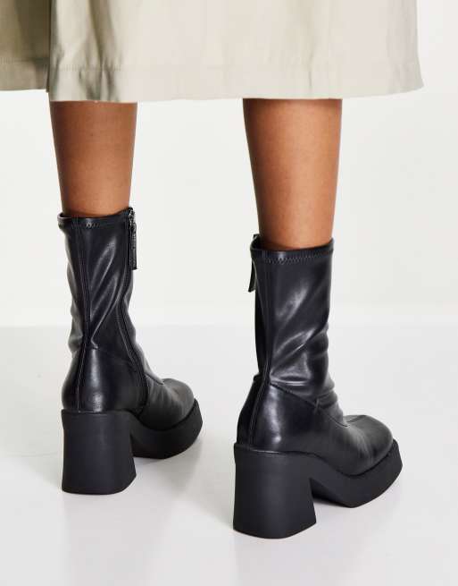 Steve Madden Uptake 90s mid cal heeled boots in black stretch ASOS