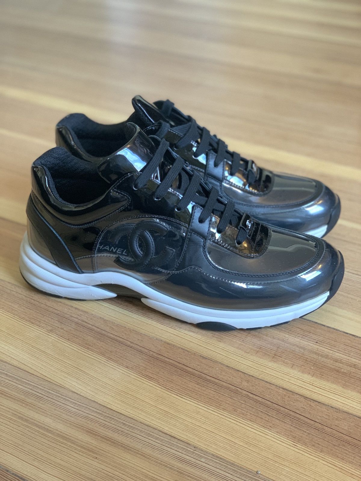 Chanel see thru clearance sneakers, Pre owned Black Patent See Through Runners Shoes clearance