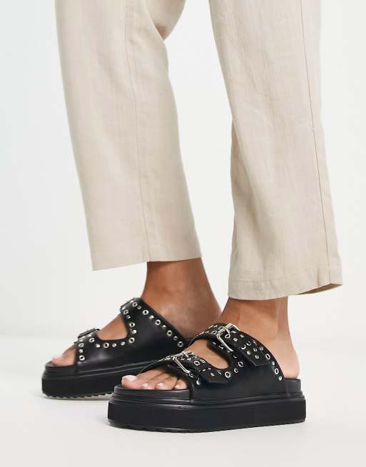 Double buckled slingback clearance sneaker platform sandal, River Island studded double buckle slingback flat sandals in black clearance