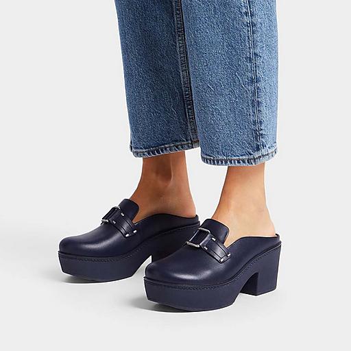 Women s Pilar Stud Buckle Leather Platform Mules FitFlop EU
