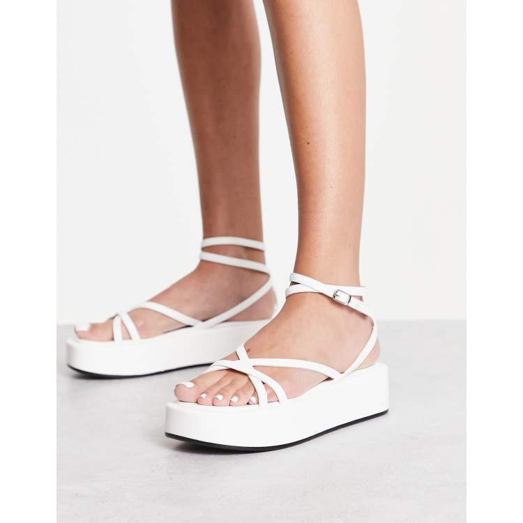 Truffle Collection strappy ankle strap flatform sandals in white
