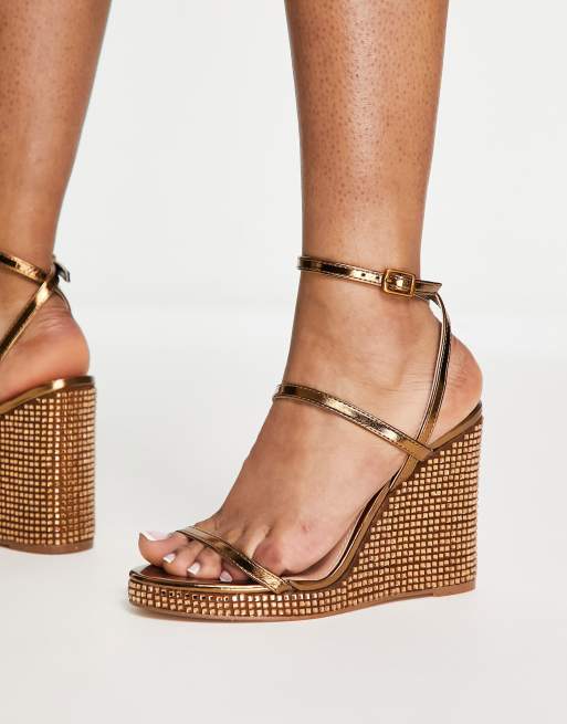 Bronze clearance wedge sandals, ANISE WEDGE 85 Bronze Glitter Fabric Wedge Sandals Diwali clearance