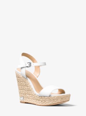 Women s Michael Kors Jill Wedge Optic White Tumbled Leather Jute