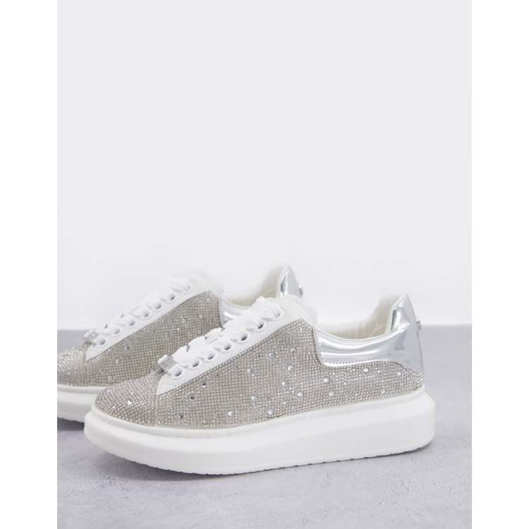 Silver clearance flatform trainers, Steve Madden Glimmer rhinestone flatform trainers in silver ASOS clearance
